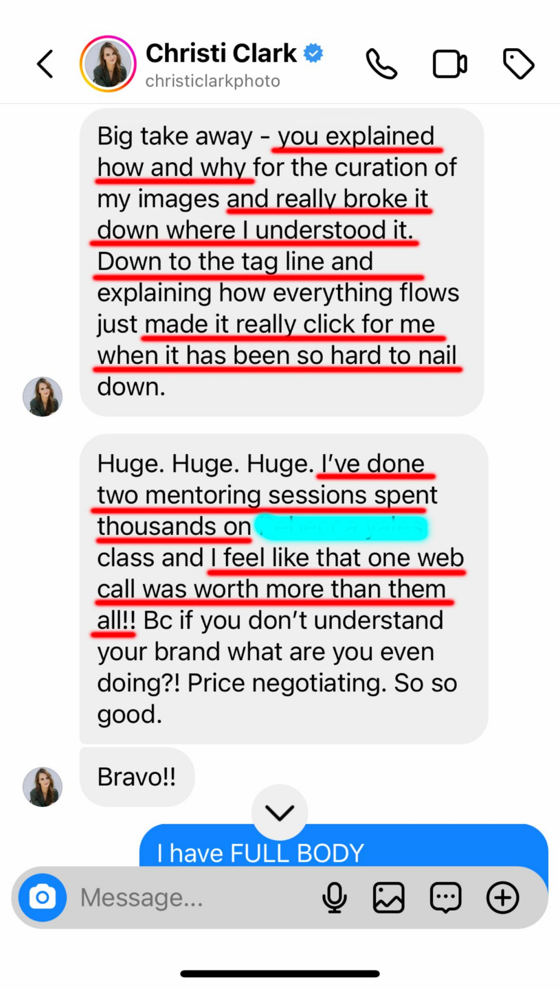 This is the work that got me featured in Vogue, landed me $70K worth of bookings in one month, and has helped countless other photographers double their rates using my system…